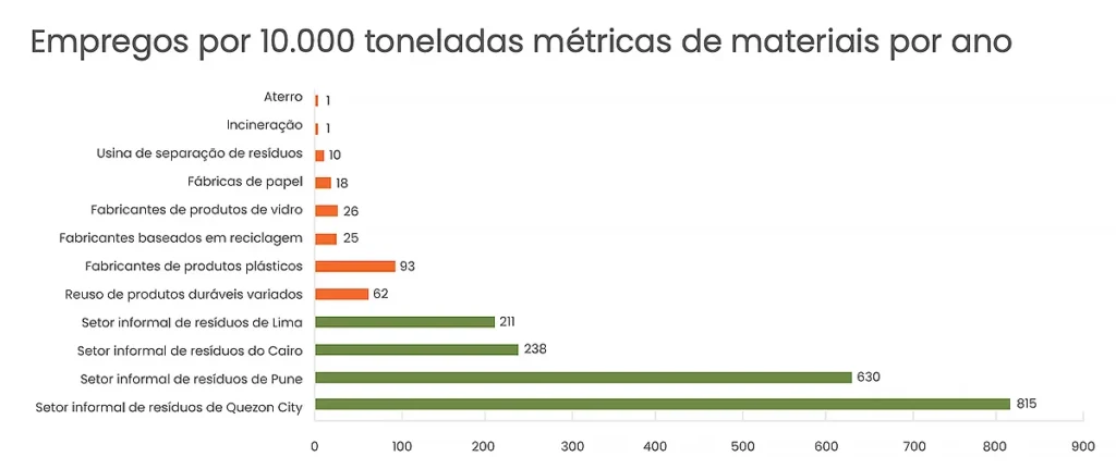 O relatório evidencia que a queima de resíduos gera apenas 1,7 emprego a cada 10 mil toneladas de lixo, enquanto a reciclagem semimecanizada cria 321 empregos no mesmo volume, além de preservar energia e reduzir a extração de matérias-primas.
