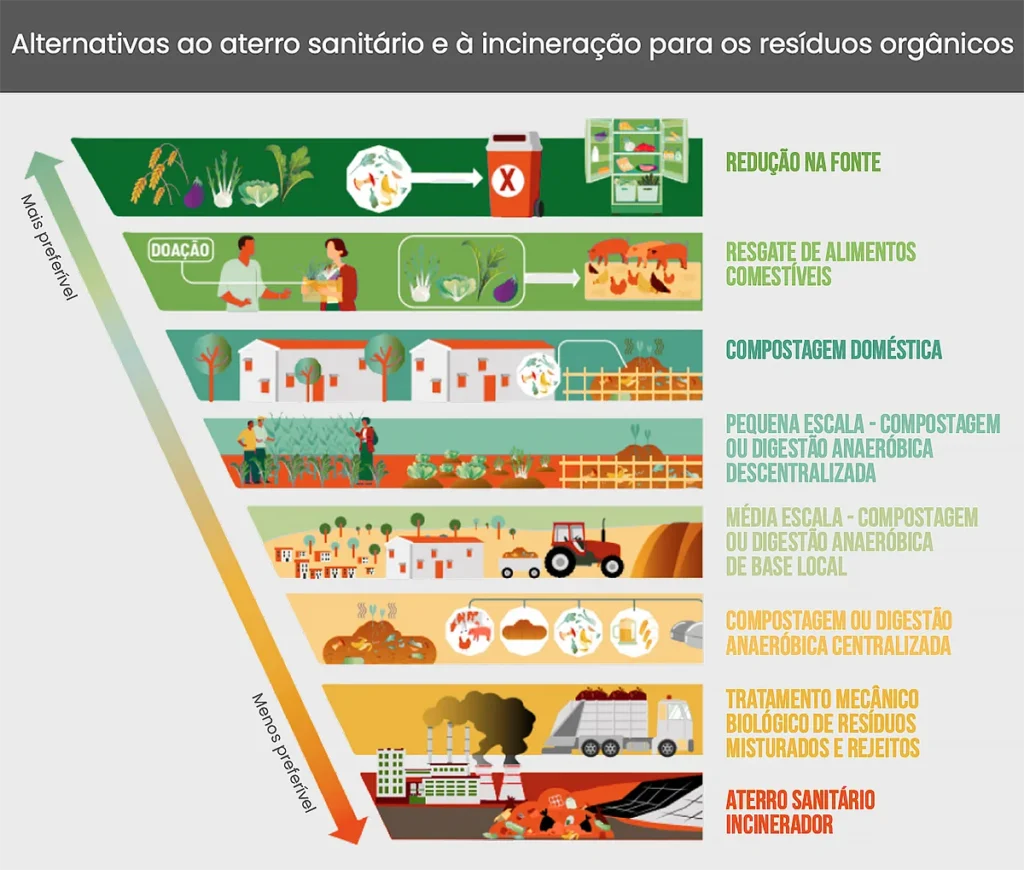 Melhores soluções para a gestão de resíduos orgânicos. Fonte: “Recuperação Energética de Resíduos Sólidos Urbanos: Mitos e Fatos sobre Incineração e Outras Formas de Tratamento Térmico”