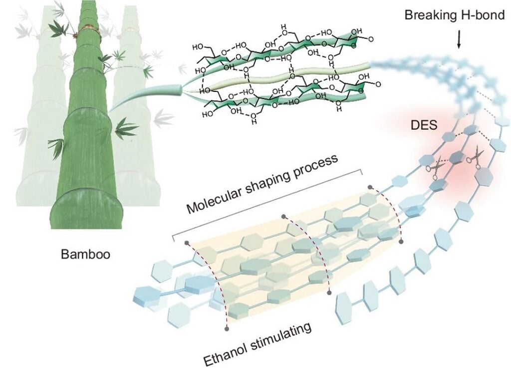 Hongying Tang e sua equipe criaram um método não tóxico, à base de álcool e solvente, capaz de dissolver a celulose do bambu em nível molecular. Depois, as moléculas são reorganizadas para formar uma rede sólida, criando o material plástico resistente. Durante o processo, a celulose é quimicamente modificada para garantir que a estrutura final seja forte e durável.
