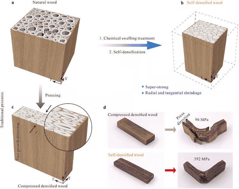 A madeira sustentável, apesar de ser ecológica e econômica, tem resistência à tração relativamente baixa, o que limita suas aplicações. No entanto, uma nova técnica de autodensificação, desenvolvida por pesquisadores da Universidade de Nanquim, na China, promete criar uma madeira superforte.